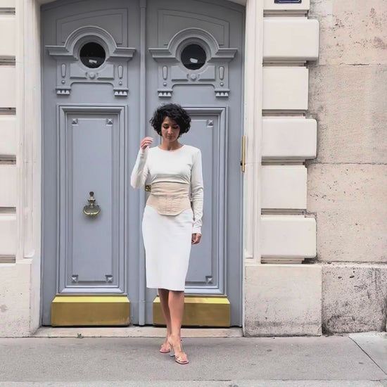 The Isisienne corset top is crafted in 100% Egyptian cotton, blending structure and softness.